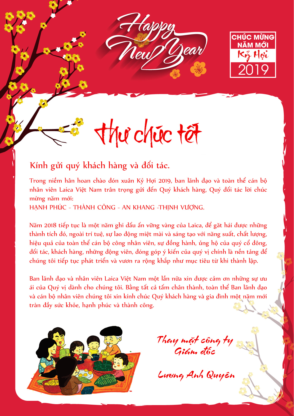 Trong không khí rộn ràng mừng năm mới, Laica Việt Nam xin gửi đến Quý khách hàng và Quý đối tác cùng gia đình một lời chúc mừng năm mới “PHỒN THỊNH - TÀI LỘC - AN KHANG - THỊNH VƯỢNG - PHÁT ĐẠT”.